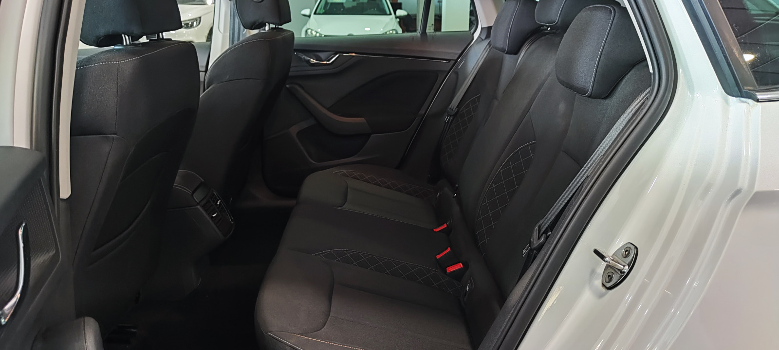 | Asientos traseros de tres plazas de tipo banco de orientación delantera con banqueta fija y respaldo abatible asimétrico |